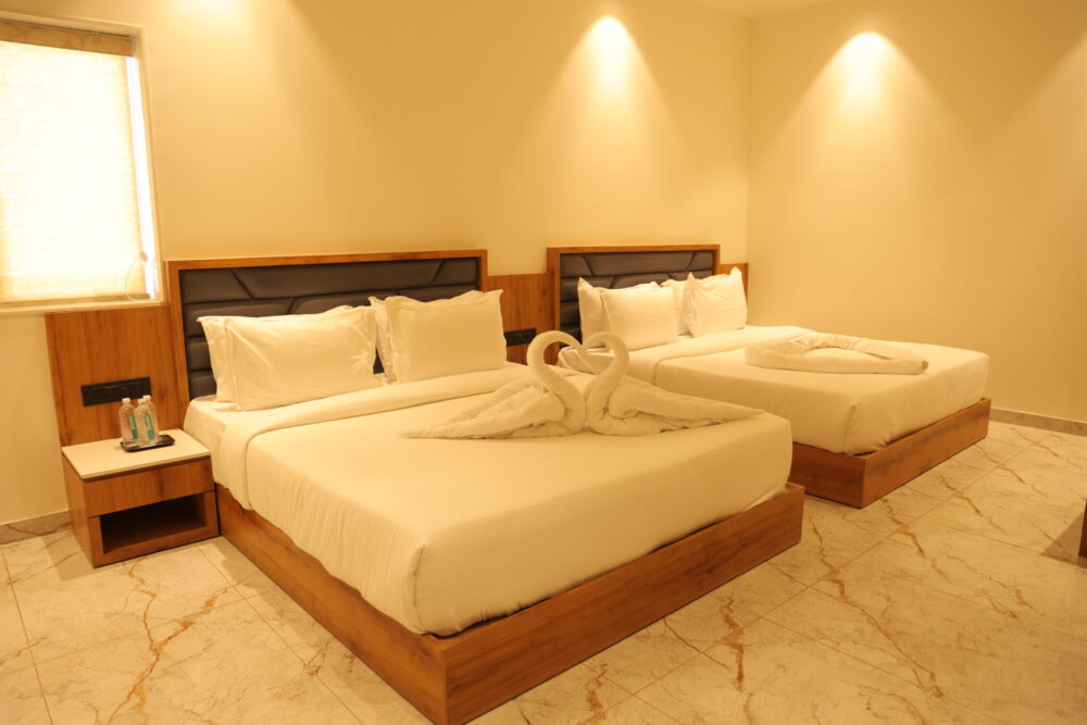 Designed especially for larger families and group travelers, our Four Majestic Family Rooms provide generous space and a homely environment. With comfortable sleeping arrangements and thoughtfully planned interiors, these rooms allow everyone to relax together while enjoying their visit to the sacred city of Dwarka.